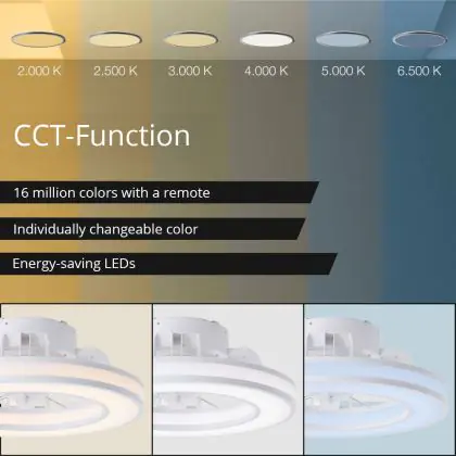| Manufacturer Name | Ceiling Lamp White + Fan (Dm 415mm) LED 26W (3100lm, 2700K-6500K, CCT, Dimmable, ICRGB, RC, Timer, | |