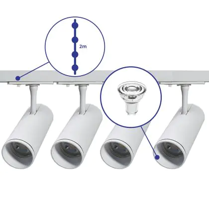 Complete Set 1-Phase Rail 2 Meter White | incl. 4x Spot + GU10 2700K 3W Dimmable + End Cap, Power Connector and I-Connector