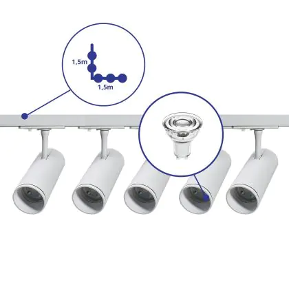 | Manufacturer Name | Complete L shaped 1-Phase Track Set White incl. 5x Spot fixture + GU10 2700K 3W Dim – 1.5 x 1.5 mete | |