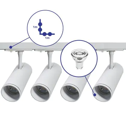 Complete Set 1-Phase Rail L 1 x 1 Meter White | incl. 4x Spot + GU10 2700K 3W Dimmable + End Cap, Power Connector and L -Connector