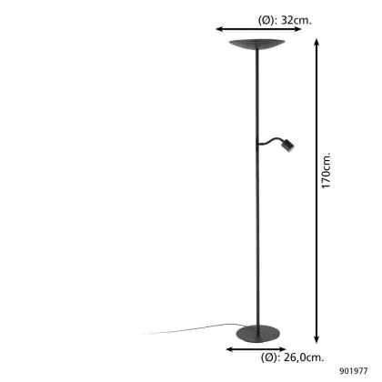 Eglo Floor Lamp Conivarino Steel Black 30.5W 3150lm - 827 Extra Warm White | Dimmable