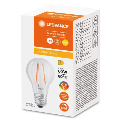 | Manufacturer Name | LED CLASSIC A DIM CRI97 S 7.2W 927 FIL CL E27 | |