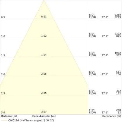 The colour code is a combination of colour rendering (CRI) and light colour (Kelvin). The first number indicates the colour rendering (1 = very poor colour rendering, 9 = maximum colour fastness). The second and third number contains the light colour. Example: the colour code 830 consists of good colour rendering (8) and warm white light (3000K). |