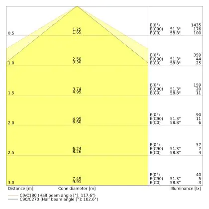 The colour code is a combination of colour rendering (CRI) and light colour (Kelvin). The first number indicates the colour rendering (1 = very poor colour rendering, 9 = maximum colour fastness). The second and third number contains the light colour. Example: the colour code 830 consists of good colour rendering (8) and warm white light (3000K). |
