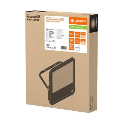 Ledvance LED Floodlight Aluminium Black 133W 20000lm 100D - 840 Cool White | IP66 - Light Sensor - Symmetrical