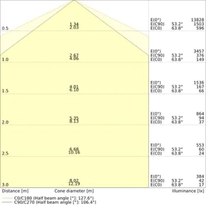 The colour code is a combination of colour rendering (CRI) and light colour (Kelvin). The first number indicates the colour rendering (1 = very poor colour rendering, 9 = maximum colour fastness). The second and third number contains the light colour. Example: the colour code 830 consists of good colour rendering (8) and warm white light (3000K). |