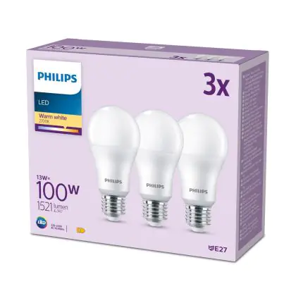 | Manufacturer Name | Box 3 stuks - Philips LED Lamp Mat - 100 W - E27 - Warmwit licht | |