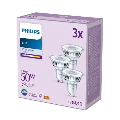 | Manufacturer Name | Box 3 stuks - Philips LED Spot - 50 W - GU10 - Koelwit licht | |
