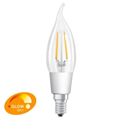 Osram Classic LED E14 Bent-tip Candle Filament Clear 4.5W 470lm - 827 Extra Warm White | Dimmable - Replaces 40W