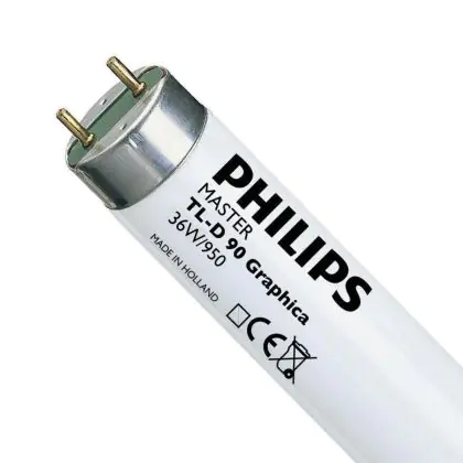 Philips TL-D 90 Graphica are fluorescent tubes made of a high quality coating which allows the same colours return as reality thanks to an excellent colour rendering index. The Master TL-D 90 Graphica can easily replace a standard TL-D of the same power. Each fluorescent tube of the range has a G13 base type. Philips TL-D 90 Graphica 36W 950 - 120cm lamps have a size of 120 cm.