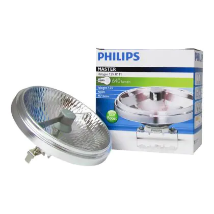 Philips MASTERLine 111 ultra low voltage halogen lamps, with aluminum reflector and double-ended burner and infrared coating. The lamps of Philips Masterline 111 range have many advantages: In addition to being energy efficient, they emit 40% less heat