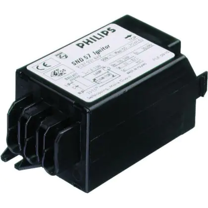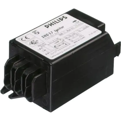 An electromagnetic system requires a ballast, ignitor and capacitor. The ignitor is designed in such a way that it only works in series circuits. For SON-I lamps, there is no ignitor required. The ignitor is fitted with terminal blocks.